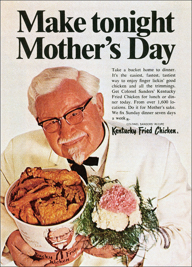 1968. kentucky-fried-chicken-mothers-day Publicado 06/05/2014 en 640 × 889 en Publicidad del Día de la Madre ← Anterior Siguiente → Publica un comentario o deja una referencia: URL de la referencia.